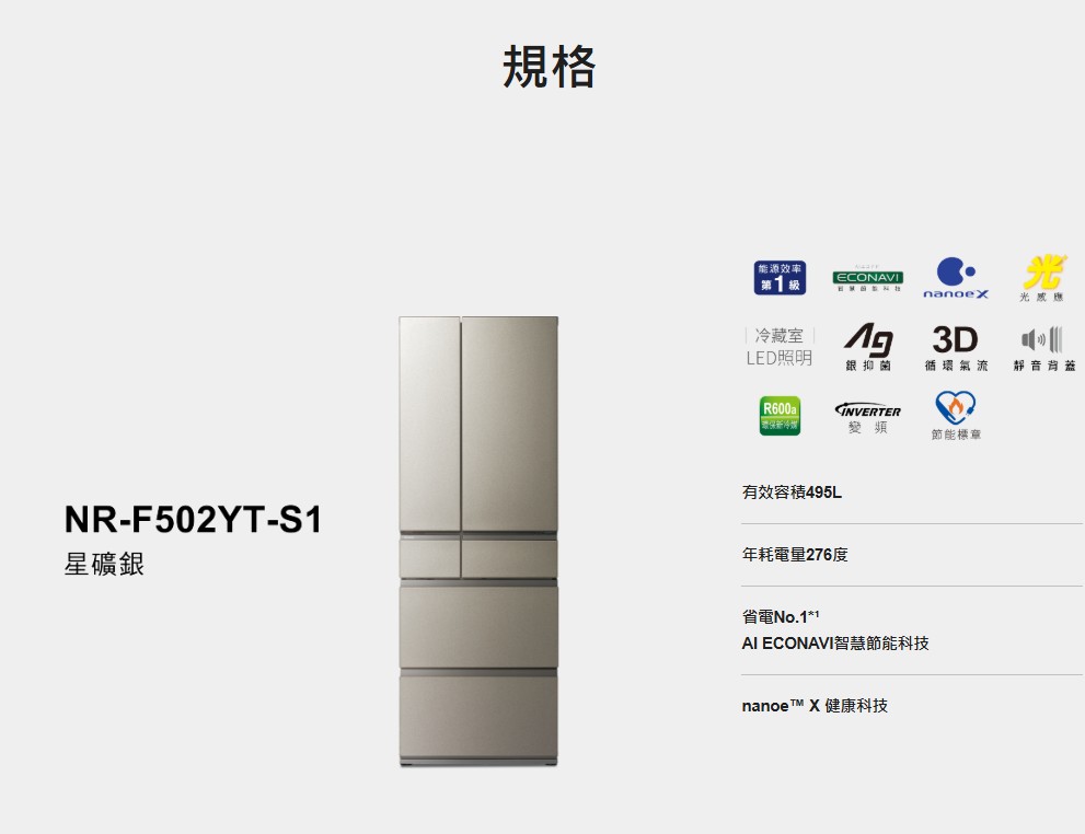 上揚家電-新上市~國際日製鋼板變頻六門冰箱495公升(NR-F502YT)