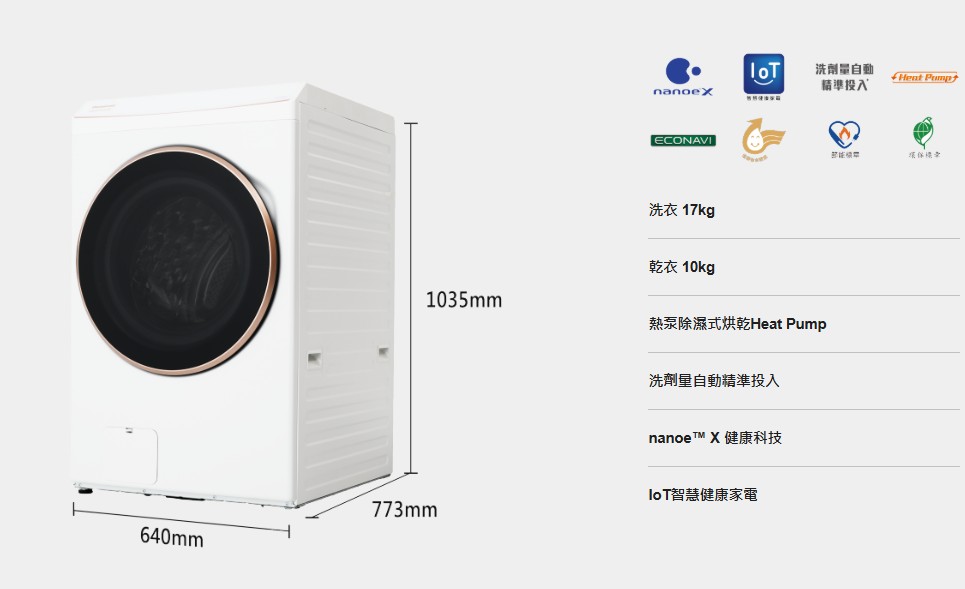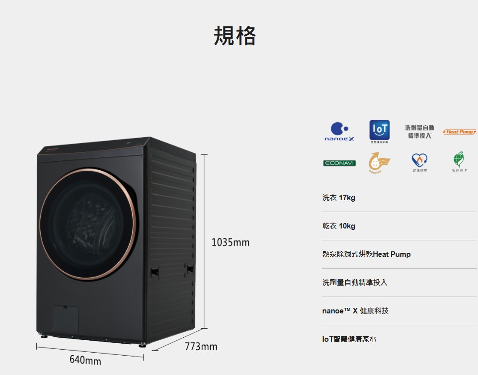 上揚家電-國際熱泵除濕式滾筒洗衣機17公斤(NA-V17RPH-W/NA-V170RPH-K)