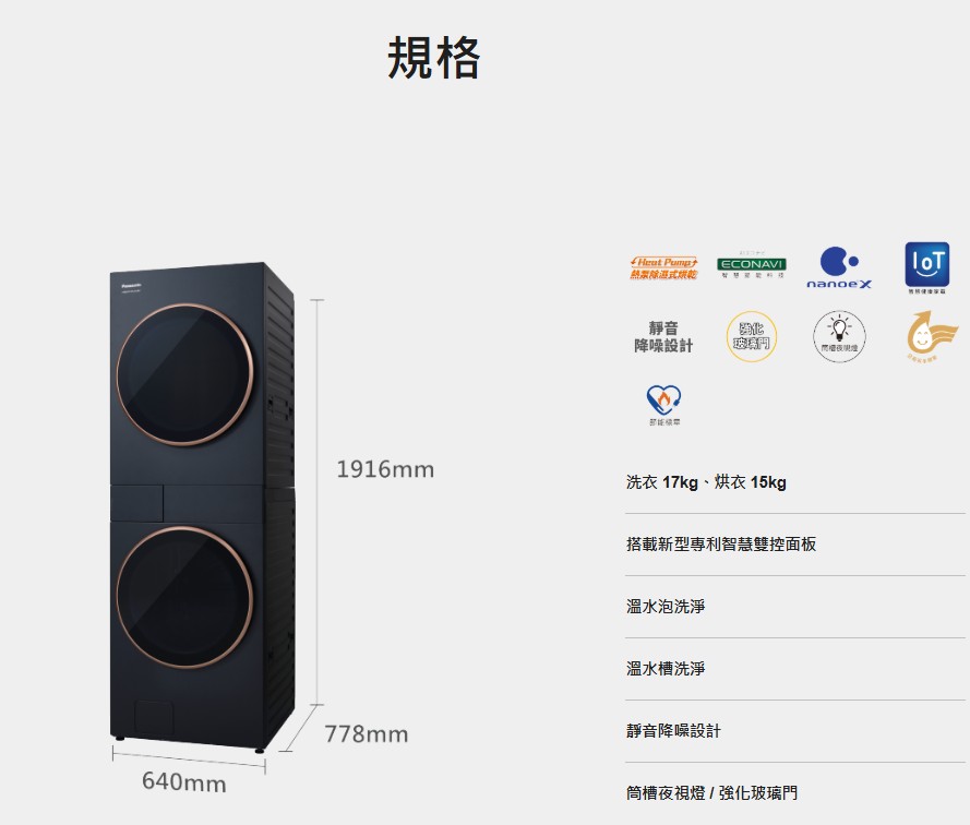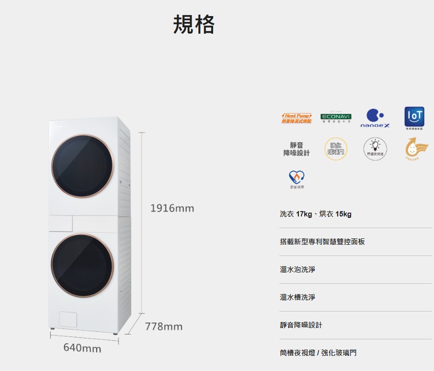 上揚家電-12月上市~預購中~國際堆疊熱泵除濕式/AI智慧雙控洗烘衣機(NA-V1715SP)