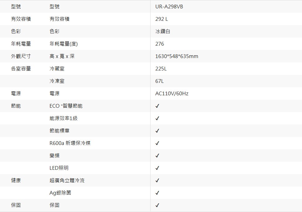 上揚家電-奇美變頻雙門冰箱292公升(UR-A298VB)
