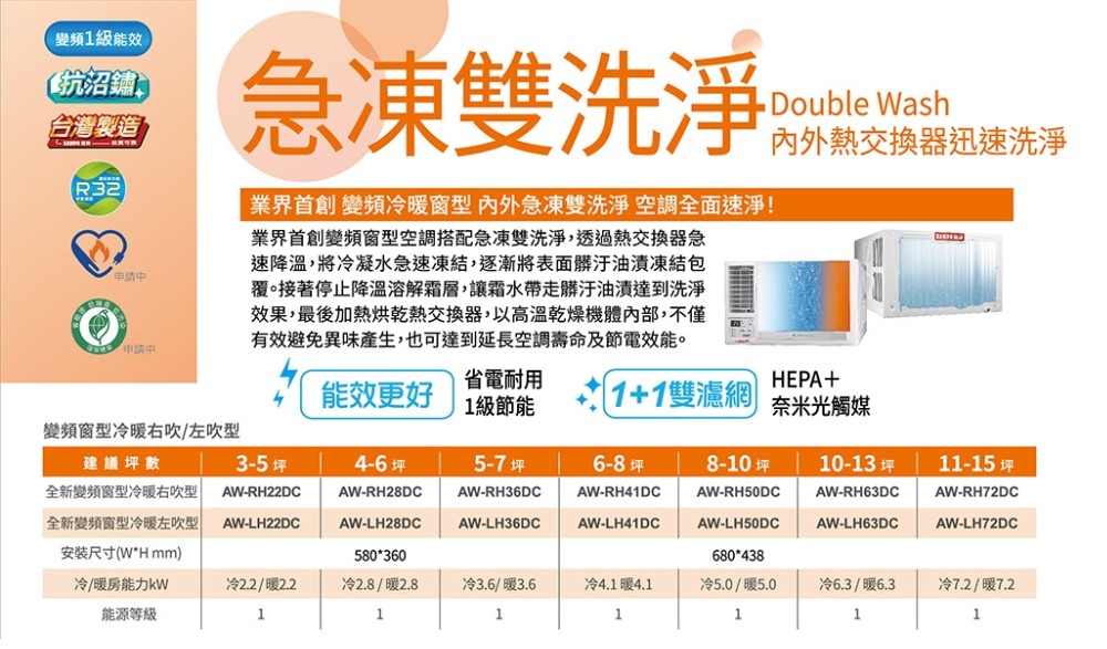上揚家電-聲寶變頻冷暖窗型(AW-RH22DC/AW-LH22DC)