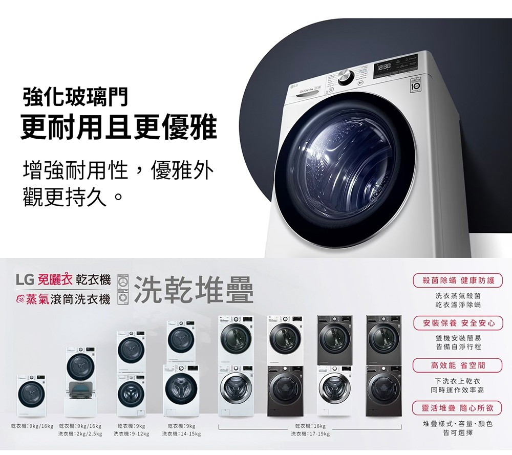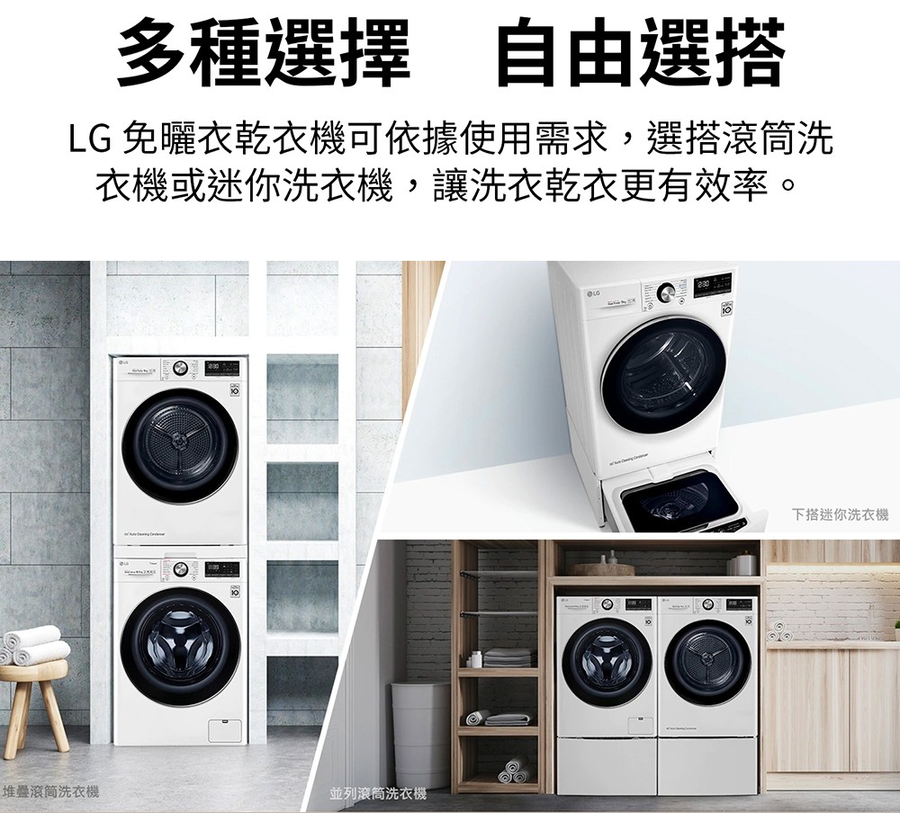 LG 13公斤蒸洗脫滾筒+10公斤免曬衣乾衣機(WD-S13NBW+WR-100VW)