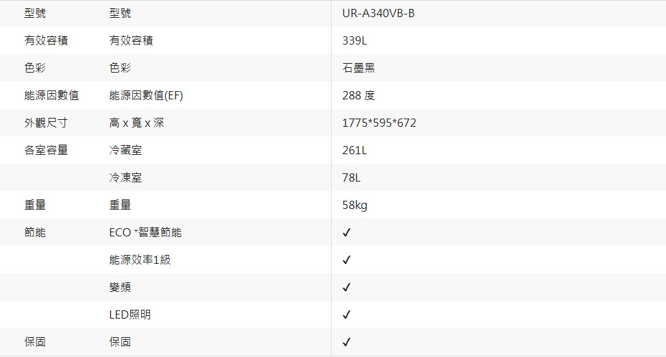 上揚家電-奇美變頻雙門冰箱339公升(UR-A340VB-B)