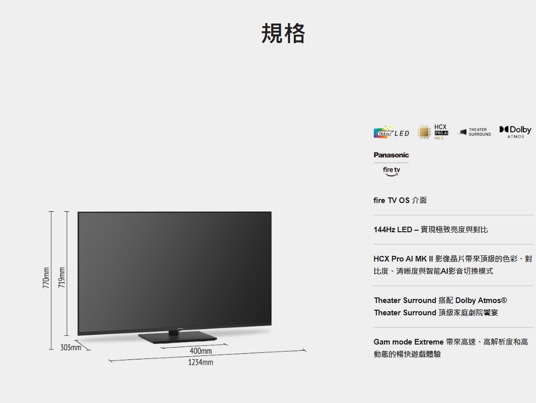 上揚家電-國際55吋4K 144Hz Fire TV聯網顯示器/6原色(TV-55W90BGT)