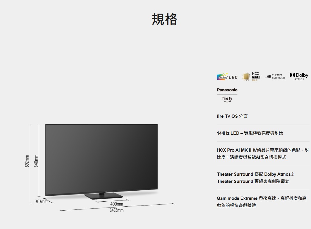 上揚家電-國際65吋4K 144Hz Fire TV聯網顯示器/6原色(TV-65W90BGT)