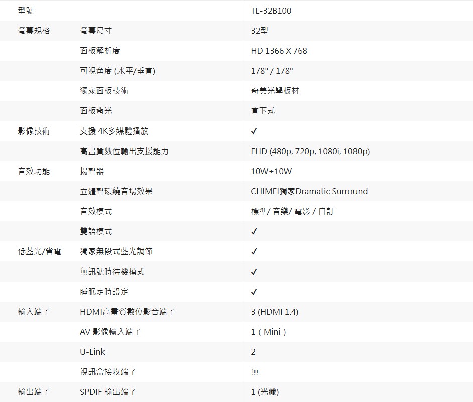 上揚家電-奇美32型液晶顯示器/無視訊盒(TL-32B100)