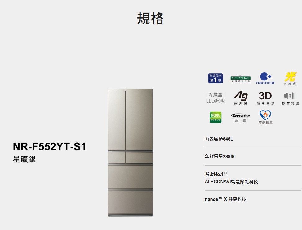 上揚家電-新上市~國際日製鋼板變頻六門冰箱545公升(NR-F552YT)