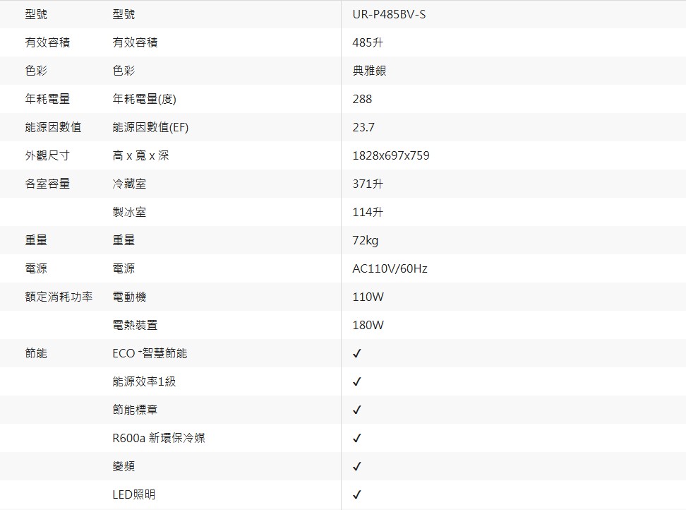 商品編號:UR-P485BV-S