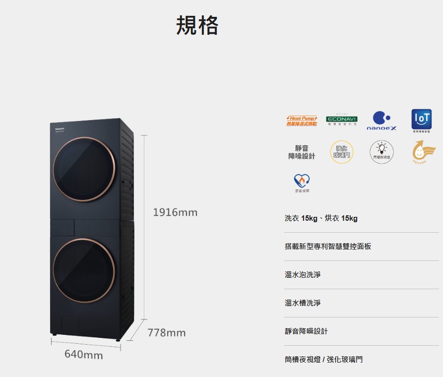 上揚家電-12月上市~熱賣中~國際堆疊熱泵除濕式/AI智慧雙控洗烘衣機(NA-V1515SP)