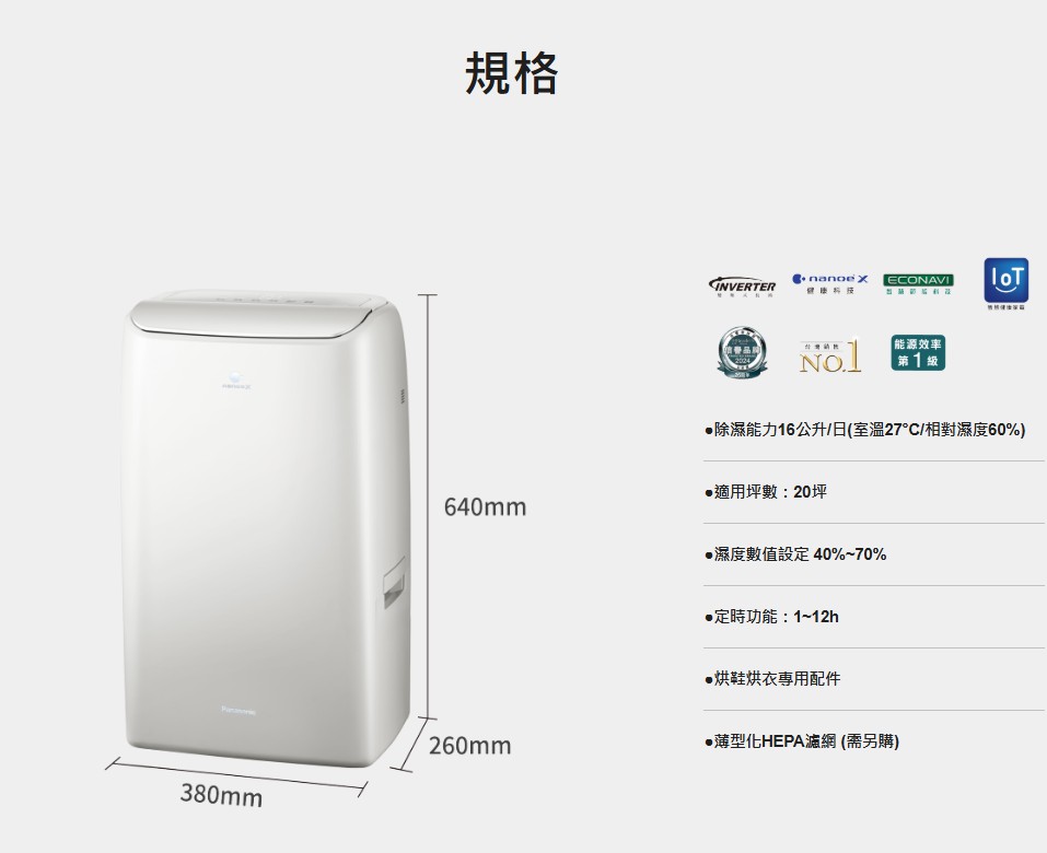上揚家電-國際變頻高效除濕機16公升/日(F-YV32NN)