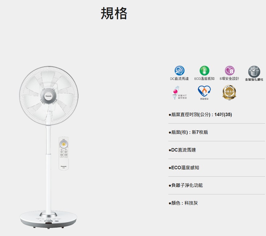 上揚家電-國際14吋DC直流節能風扇H系列(F-H14GND)