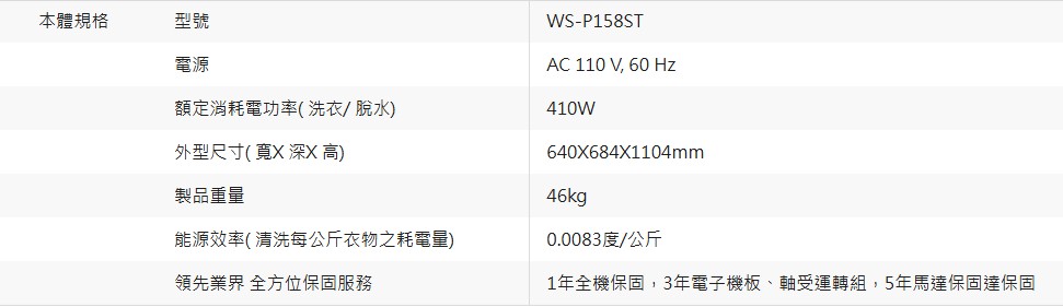 上揚家電-奇美定頻洗衣機15公斤(WS-P158ST)