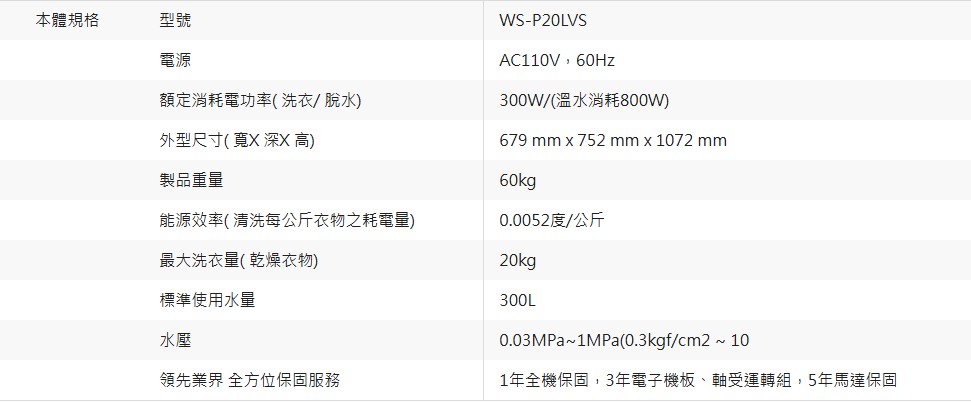 上揚家電-奇美變頻温水洗衣機20公斤(WS-P20LVS)