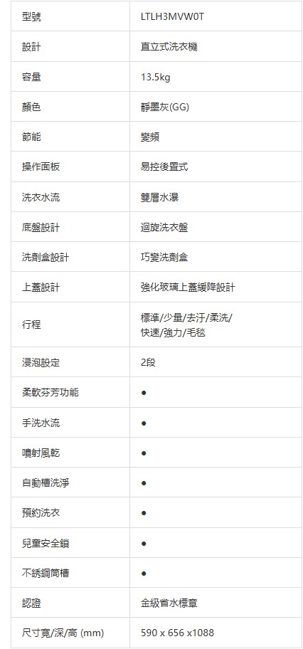 上揚家電-日立直立式洗衣機13.5公斤(LTLH3MVW0T)