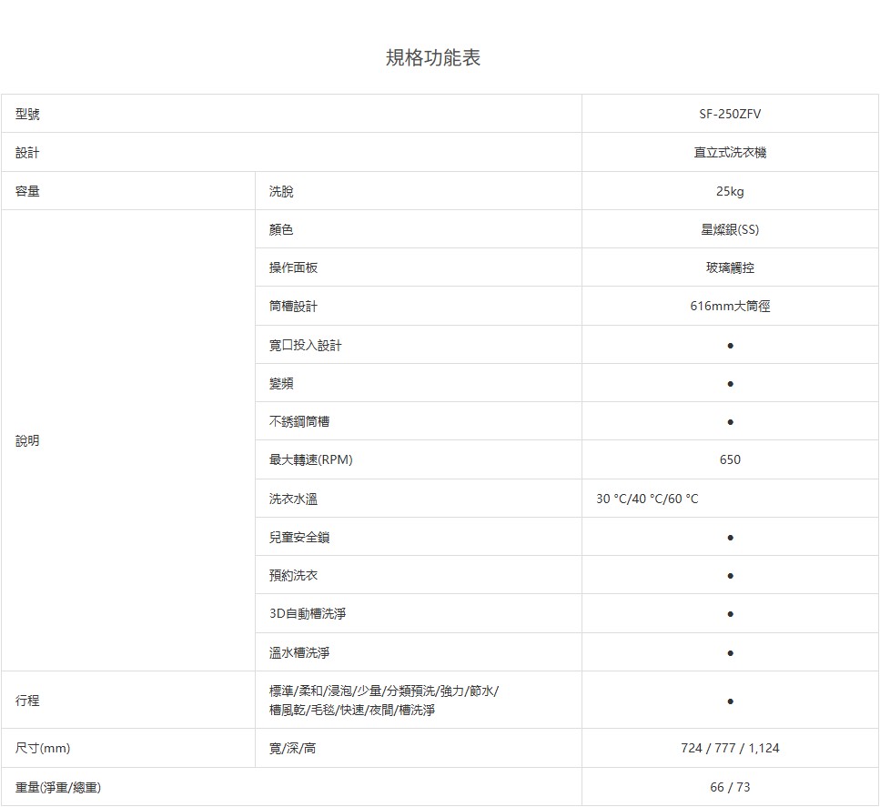 上揚家電-日立HITACHI大容量變頻洗衣機25公斤(SF250ZFV)