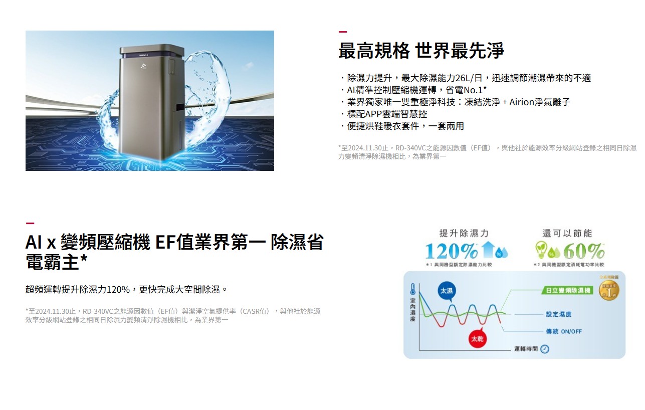 上揚家電行-日立變頻清淨除濕機17公升(RD-340VC)