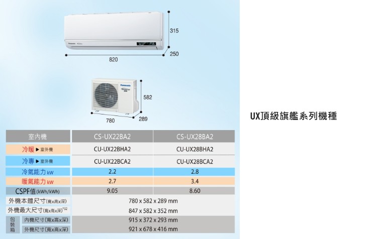 商品編號:CS-UX28BA2/CU-UX28BCA2