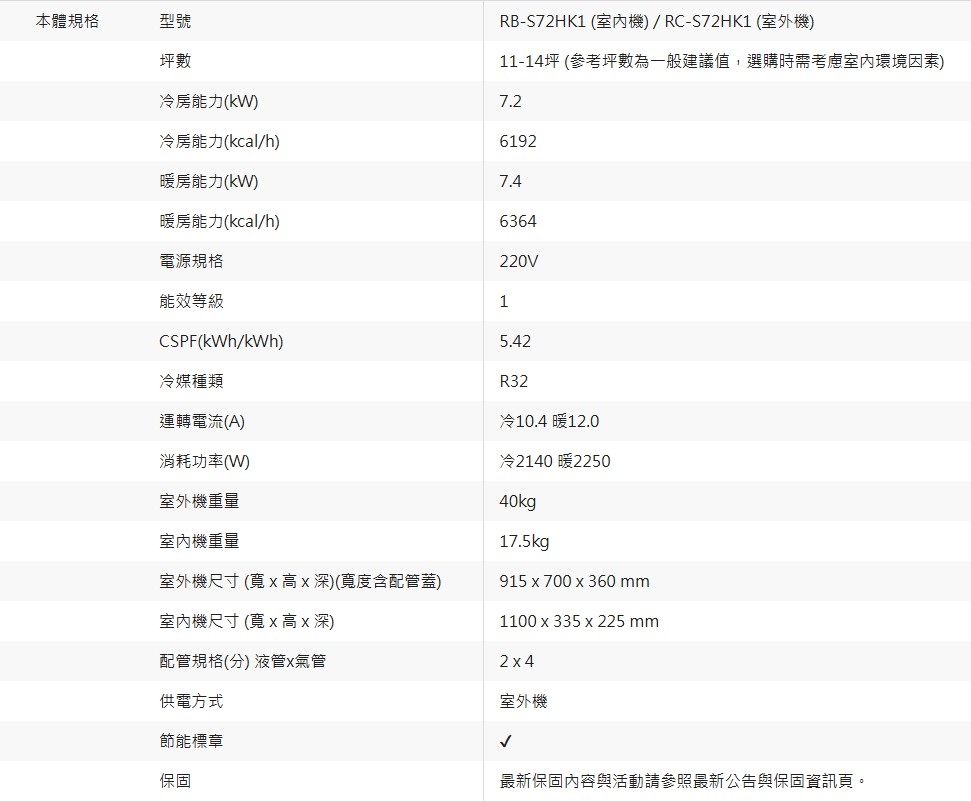 上揚家電-奇美星揚系列變頻冷暖一對一(RB-S72HK1/RC-S72HK1)