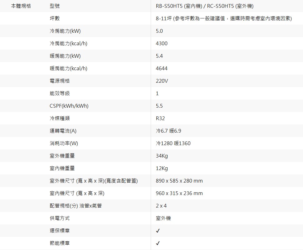 商品編號:RB-S50HT5/RC-S50HT5