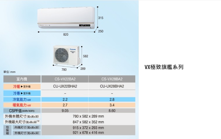 商品編號:CS-VX22BA2/CU-VX22BHA2