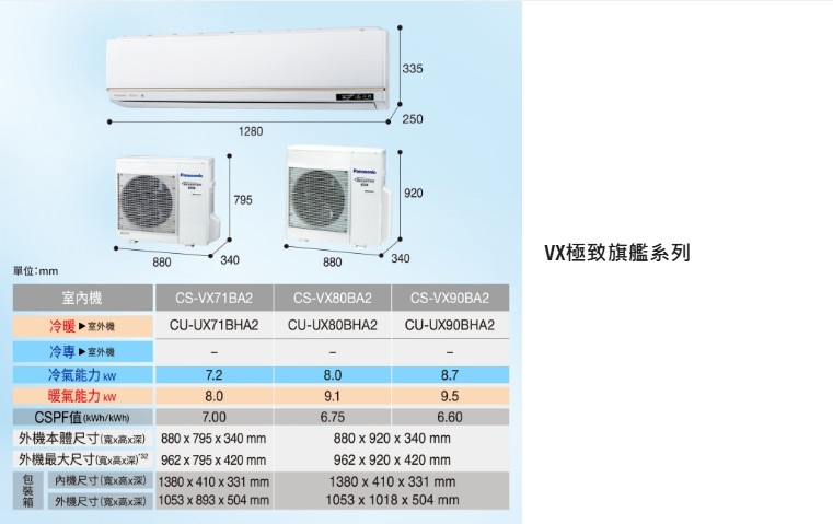 商品編號:CS-VX90BA2/CU-VX90BHA2