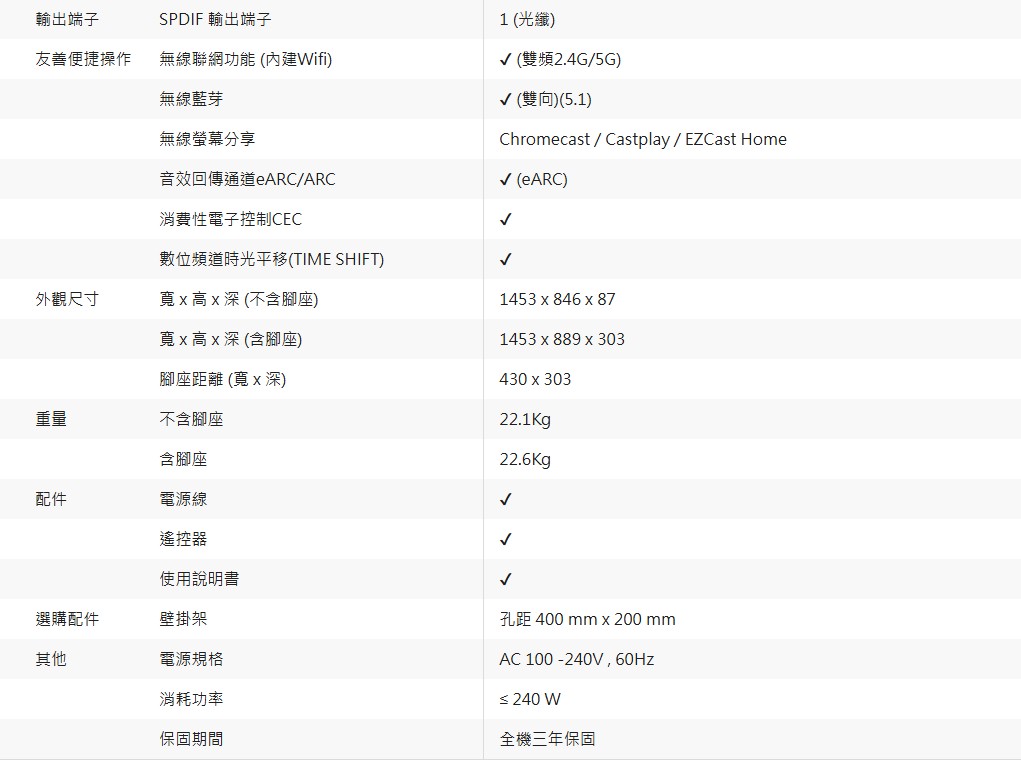 2.如需額外配線或按裝壁掛架、懸吊架及特殊牆面施工費用另計。