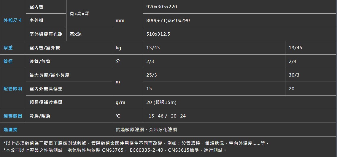 1.安裝前請自行確認安裝位置空間坪數是否足夠、安裝位置尺寸大小、電源電壓、室內外機排水 。