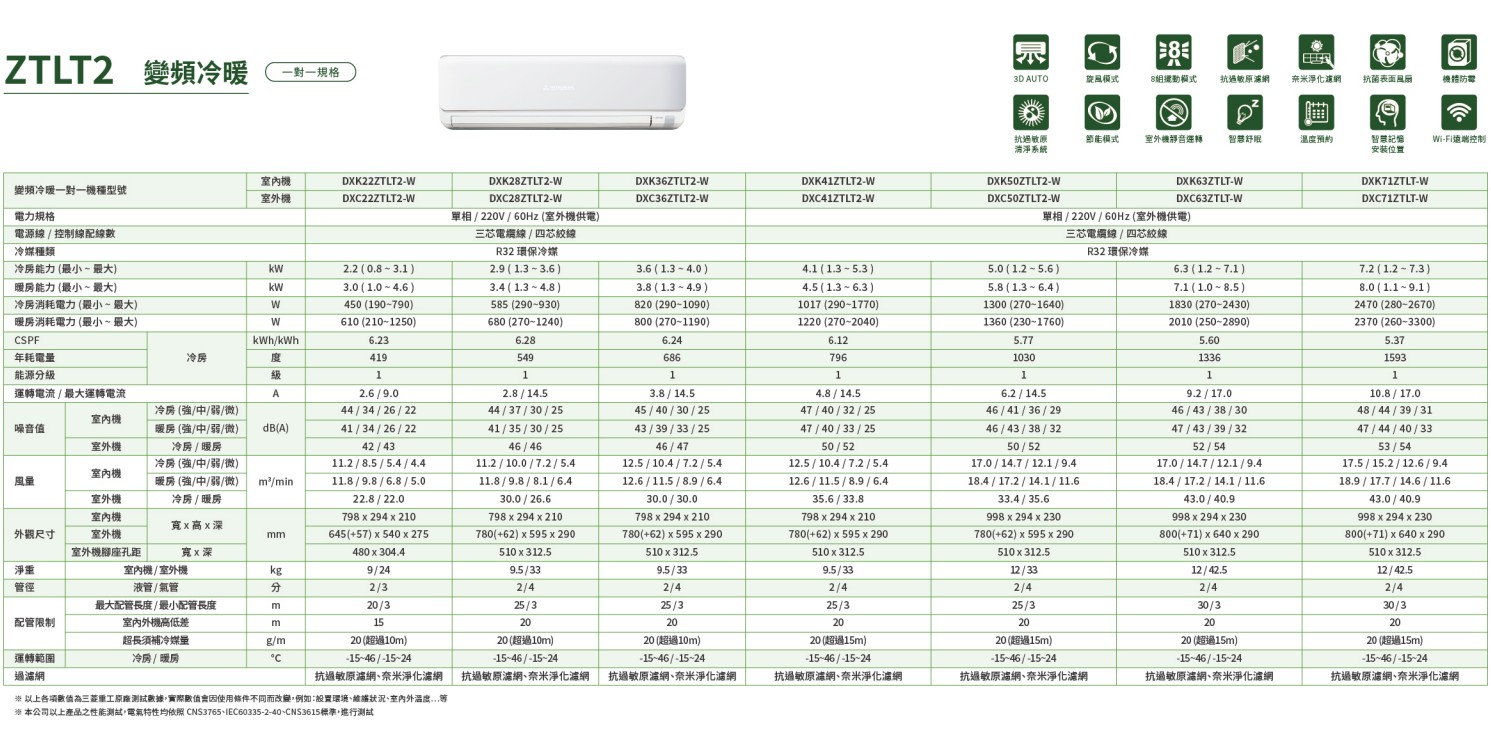 上揚家電-三菱重工朝日系列變頻冷暖一對一(DXK50ZTLT2-W/DXC50ZTLT2-W)