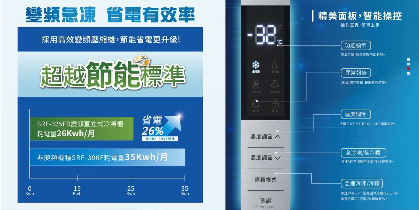 上揚家電-聲寶變頻直立式冷凍櫃325公升(SRF-325FD)