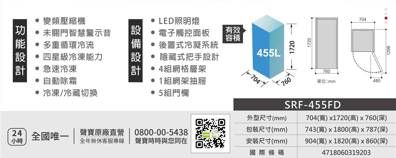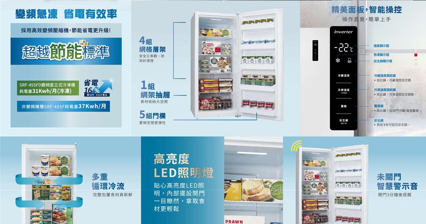上揚家電-聲寶變頻直立式冷凍櫃455公升(SRF-455FD)