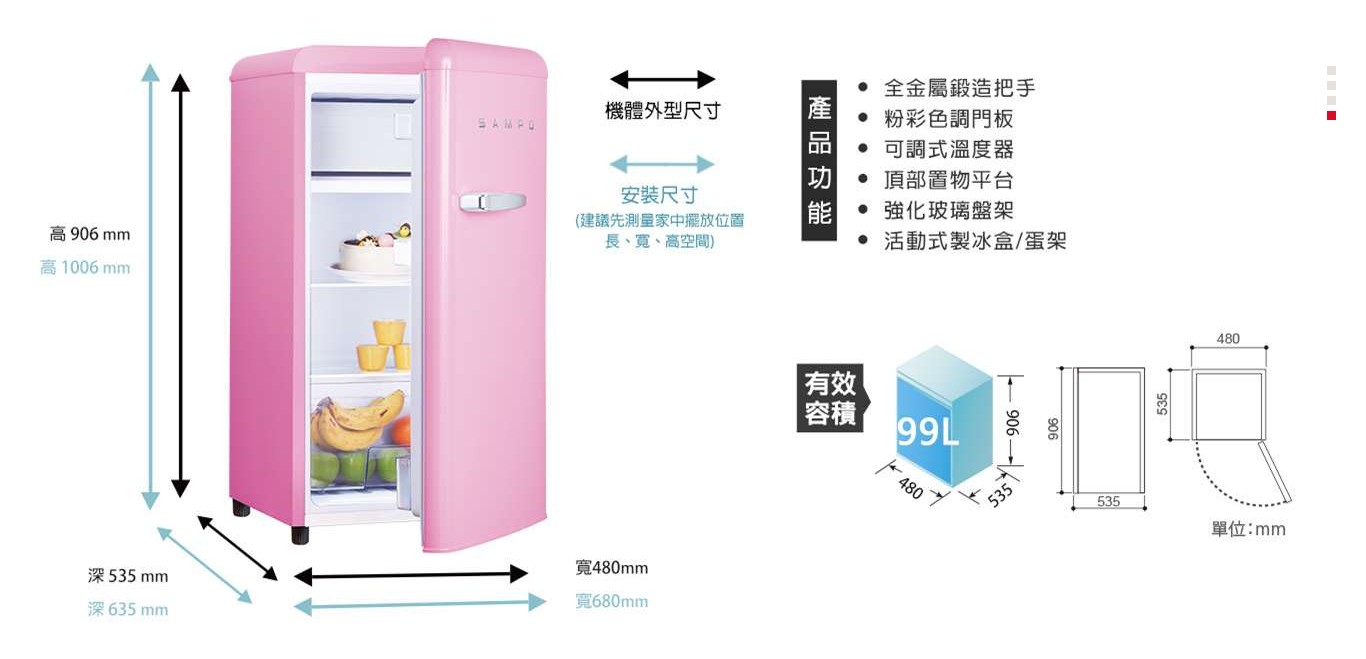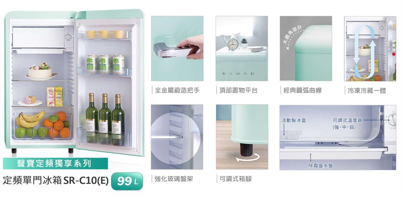 上揚家電-聲寶歐風美型兩門冰箱99公升(SR-C10(E)/SR-C10(P))