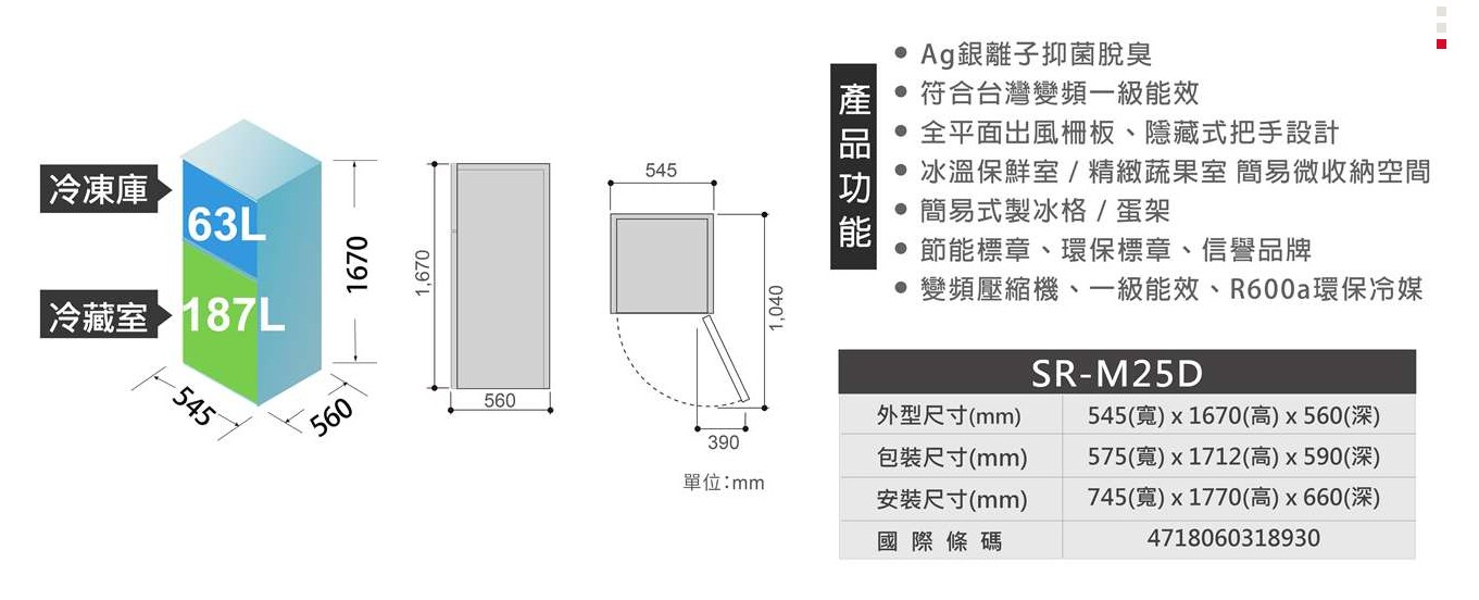 上揚家電-聲寶經典變頻兩門冰箱250公升(SR-M25D)