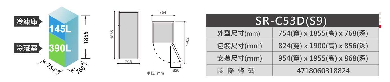 上揚家電-聲寶變頻兩門冰箱535公升(SR-C53D(S9))