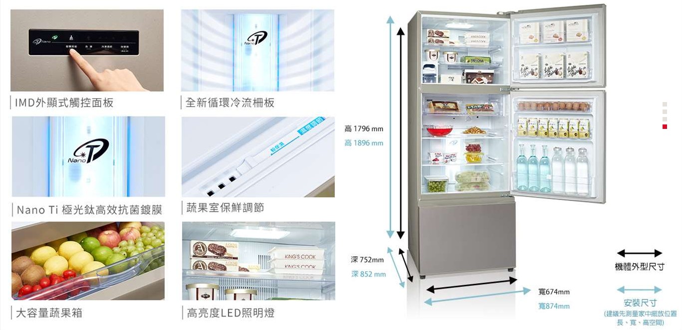 上揚家電-聲寶變頻三門冰箱480公升(SR-C48DV(Y1))