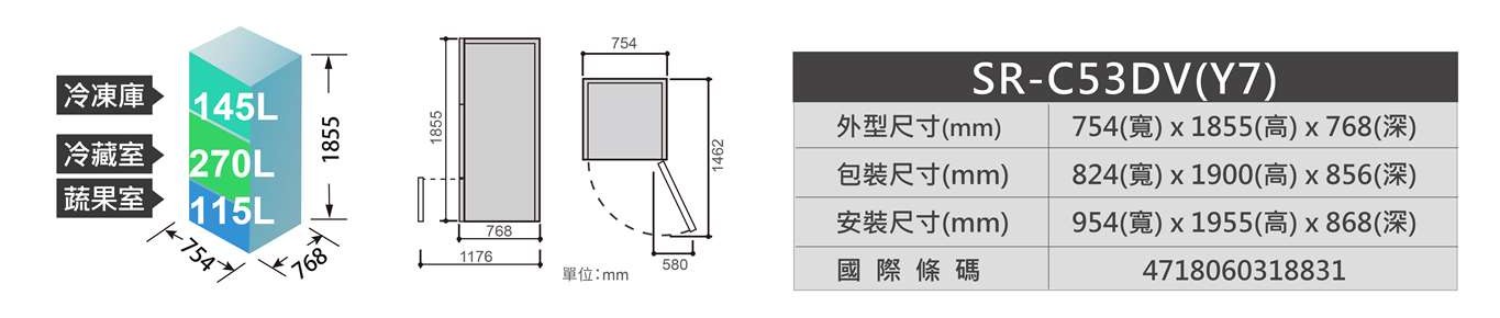 上揚家電-聲寶變頻三門冰箱530公升(SR-C53DV(Y7))