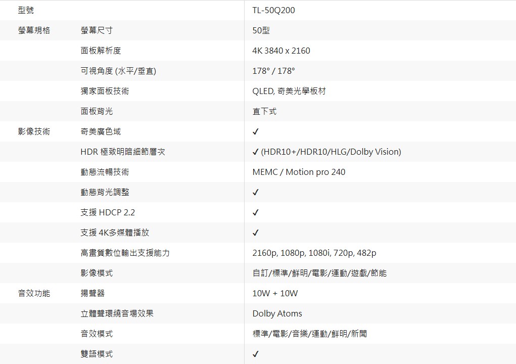 上揚家電-奇美50吋4K聯網QLED/無視訊盒(TL-50Q200)