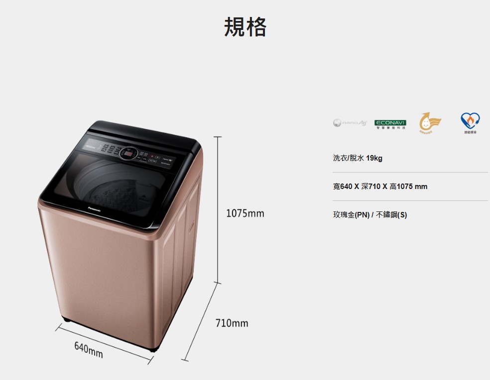 上揚家電-國際強效抑菌變頻洗衣機19公斤(NA-V190MT-PN)