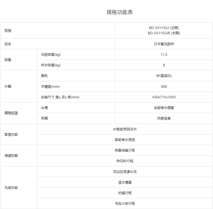 上揚家電-日立日本原裝滾筒洗衣機11.5公斤(BDSV115GJ/BDSV115GJR)