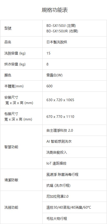 上揚家電-日立日本原裝AI智能感測熱泵滾筒洗衣機15公斤(BDSX150JJ/BDSX150JJR)