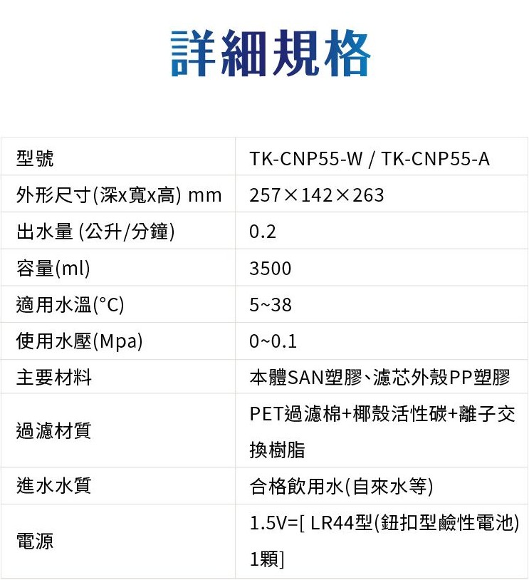 上揚家電-國際雙口速淨濾水壺適用濾芯3入組(TK-FCNP51-3)
