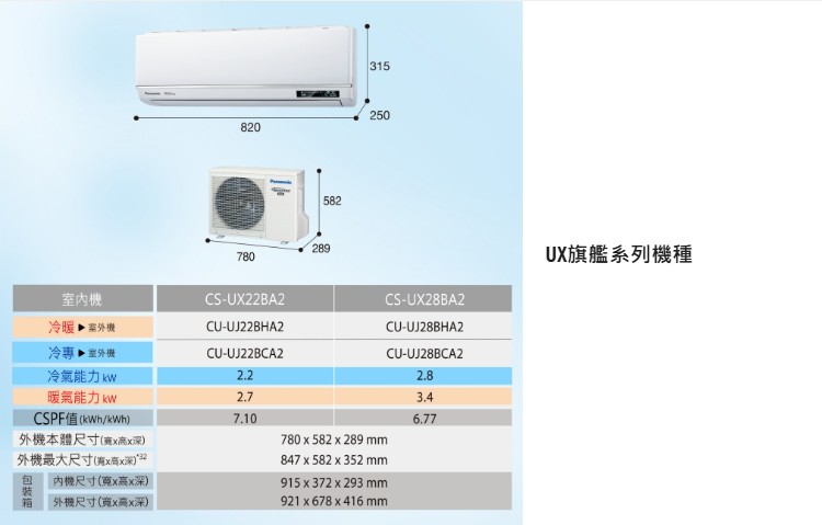商品編號:CS-UX28BA2/CU-UJ28BHA2