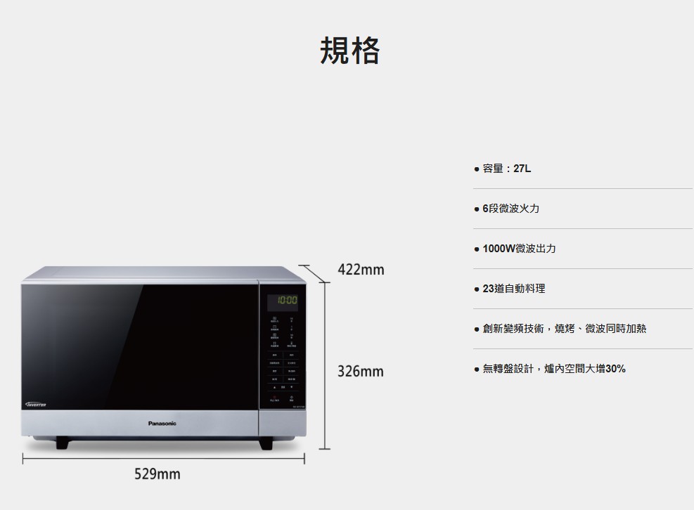 上揚家電-國際變頻燒烤微波爐27公升(NN-GF574)