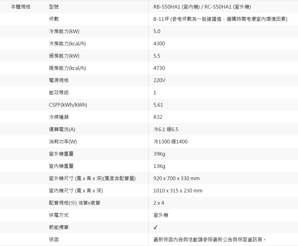 商品編號:RB-S50HA1/RC-S50HA1
